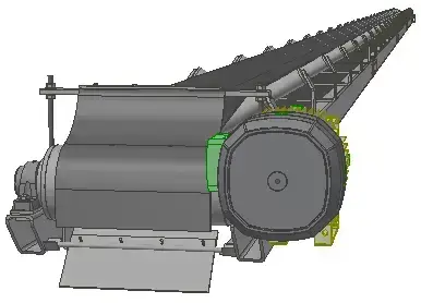 The cross transport is placed across the entire width of the large blasting hall, usually at the end of the hall. In contrast to the smaller blast cabinets where conveyor screws (max. 16 meters) are generally used, a conveyor belt is an established and economical solution.