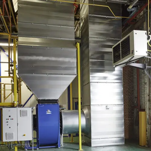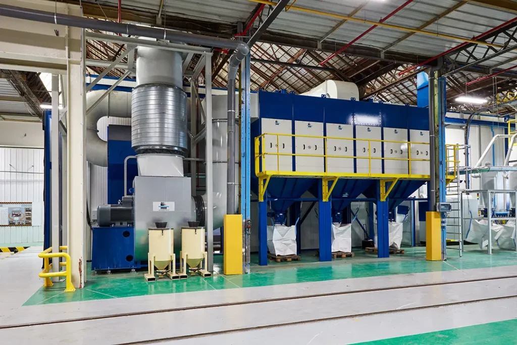 The Atex  dust collector  has a capacity of 70,000 m³ /h, it is isolated from the 2 suction labyrinths in the cabin by 2 Atex non-return valves.