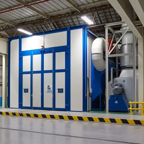 Grit blasting cabin of 30 x 7.1 x 6 (L x W x H) meters