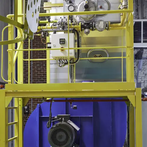 The 2 types of abrasives are separated automatically; they are cleaned and recycled independently in 2 separate silos of 2500 liters each. It is possible to install 8 sandblasters of 240 liters in parallel under the silos.