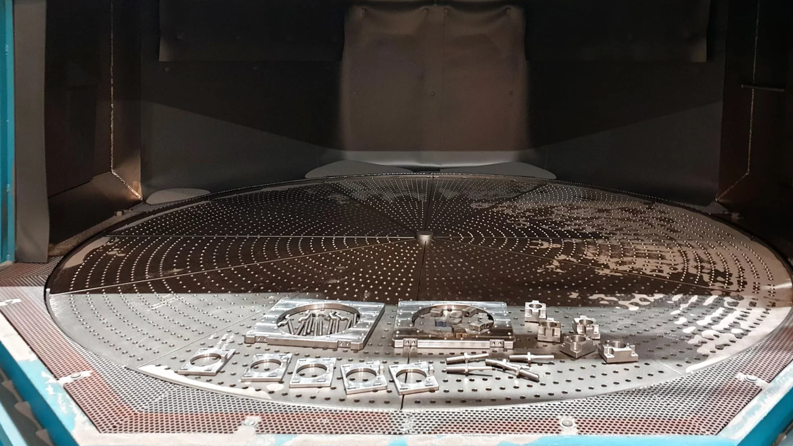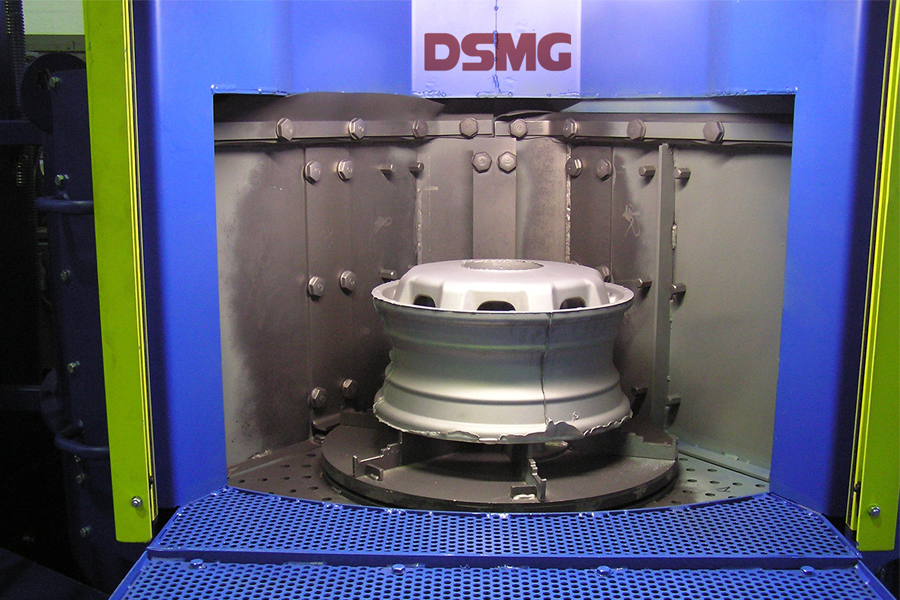 Disa satellite table wheelblasting machine is the indexing mechanism which rotates the workpiece through fixed positions within the blasting machine. The shot blasting chamber is made of 12mm thick steel weldments. All components are lined. A 25mm thick polyurethane lining is used for wear protection.