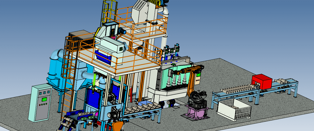 The shot blasting and peening equipment for shells case is designed to clean and strengthen both inner and outer surfaces—removing dirt, oxide scale, and welding slag externally by shot blasting, and internally applying shot peening to eliminate tensile stresses, induce compressive stress, and enhance fatigue strength and resistance to stress corrosion cracking.