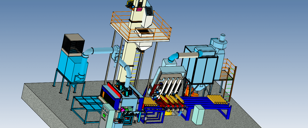 The cylinder inner wall sandblasting machine is designed for surface pre-treatment prior to coating application. DISA has developed a high-productivity, fully automatic system specifically for internal sandblasting of small cylinders. The equipment enables fully automated loading, unloading, and inner-wall blasting operations.