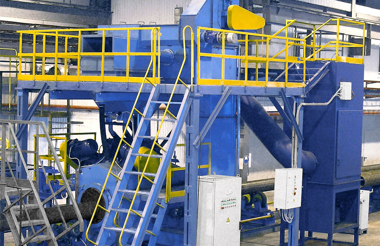 Special installations for blasting steel plate, profiles, sections, pipes, etc.